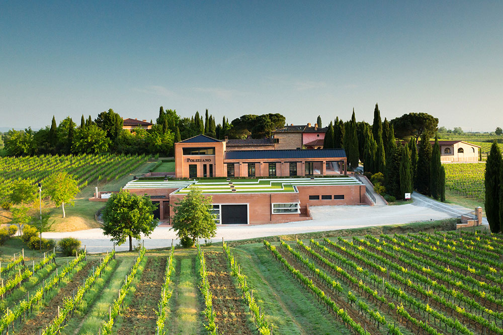 Straordinaria realtà toscana, l’azienda agricola Poliziano rappresenta l’eccellenza del territorio e dei vini di Montepulciano, in provincia di Siena. Nata nel 1961 da un primo nucleo di 22 ettari vitati, negli anni è cresciuta fino a raggiungere gli attuali 120 ettari, tutti coltivati a vigneto. Una realtà dinamica, capace di coniugare tradizione e modernità come poche altre, il cui nome è un omaggio all'umanista e poeta Angelo Ambrogini detto il "Poliziano", che a Montepulciano nacque. Da sempre proprietà della famiglia Carletti e attualmente gestita da Federico Carletti che ne regge le redini da quasi quarant’anni, l’impresa ha attraversato varie fasi di rinnovamento, per cui si è sistematicamente confrontata con le più avanzate tecniche sia enologiche che agronomiche. In vigna, le piante crescono a un’altitudine che varia tre i 280 e i 450 metri sul livello del mare, e i terreni sono particolarmente vocati alla coltivazione della vite, con la loro composizione mista di argilla, tufo e pietra. In cantina, vinificazione, maturazione e affinamento sono tutte fasi seguite scrupolosamente, sfruttando un savoir faire di oltre mezzo secolo. Tutti i vini toscani di Poliziano richiamano la tradizione storica del territorio, ma allo stesso tempo sono stati capaci di conquistarsi fama e prestigio internazionali. La loro è una lunga storia: nati negli anni ‘80, conservano le etichette originali ma si sono affinati ed evoluti perseguendo sempre l'obiettivo di una qualità senza compromessi. Ogni vino, dal Rosso di Montepulciano fino al pluripremiato Vino Nobile "Asinone", è principalmente ottenuto da uve di sangiovese, chiamato in zona con lo storico nome di "prugnolo gentile". Non solo però, recentemente, con il nome "Terre di Poliziano", sono stati pensati alcuni vini al di fuori dello storico nucleo produttivo, per cui oggi le etichette della cantina provengono anche da Cortona, patria di alcune delle migliori varietà internazionali di tutta la Toscana, e da Scansano, dove il sangiovese stesso ha dato vita a un’insospettabile Morellino a vocazione mediterranea.
